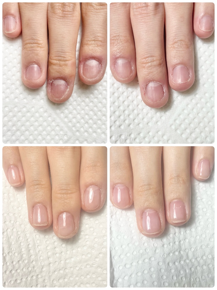 深爪や小さい爪も、丁寧なケアで少しずつ理想の形へ。