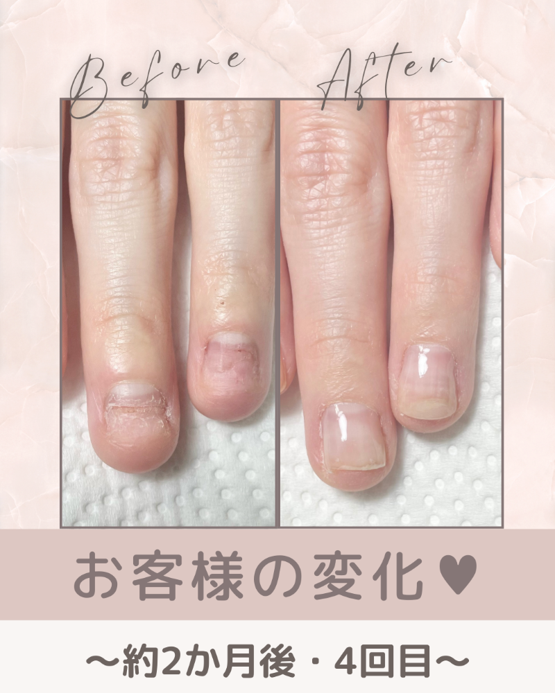 深爪や小さい爪も、丁寧なケアで少しずつ理想の形へ。