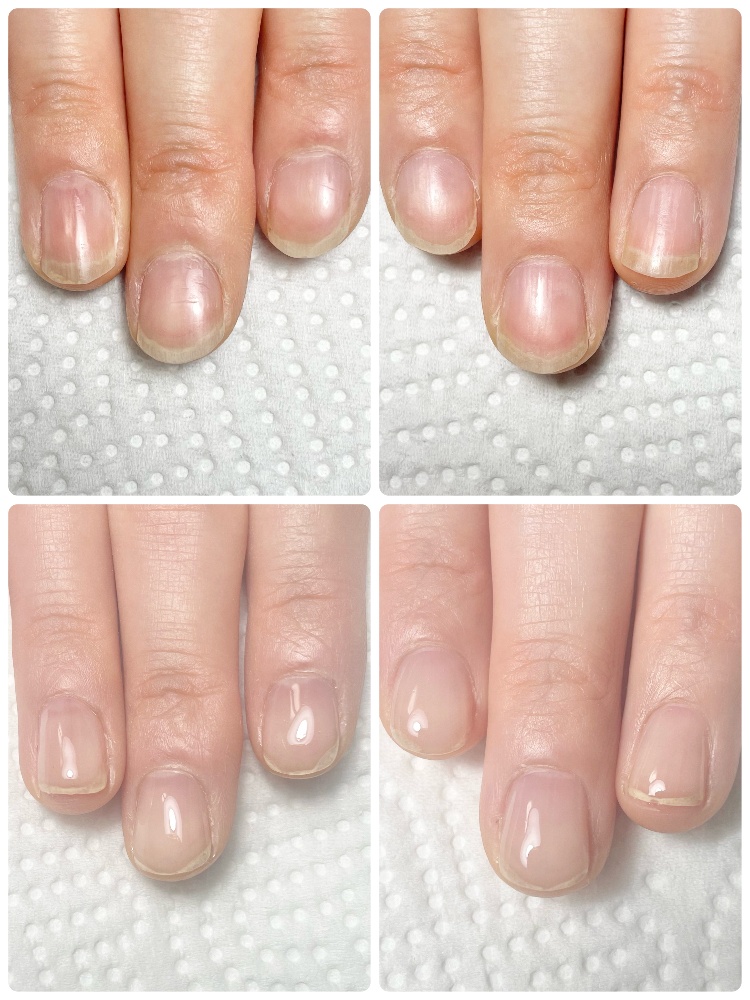 最初は爪が少し割れやすく、赤みがあったり乾燥が気になる状態でしたが、